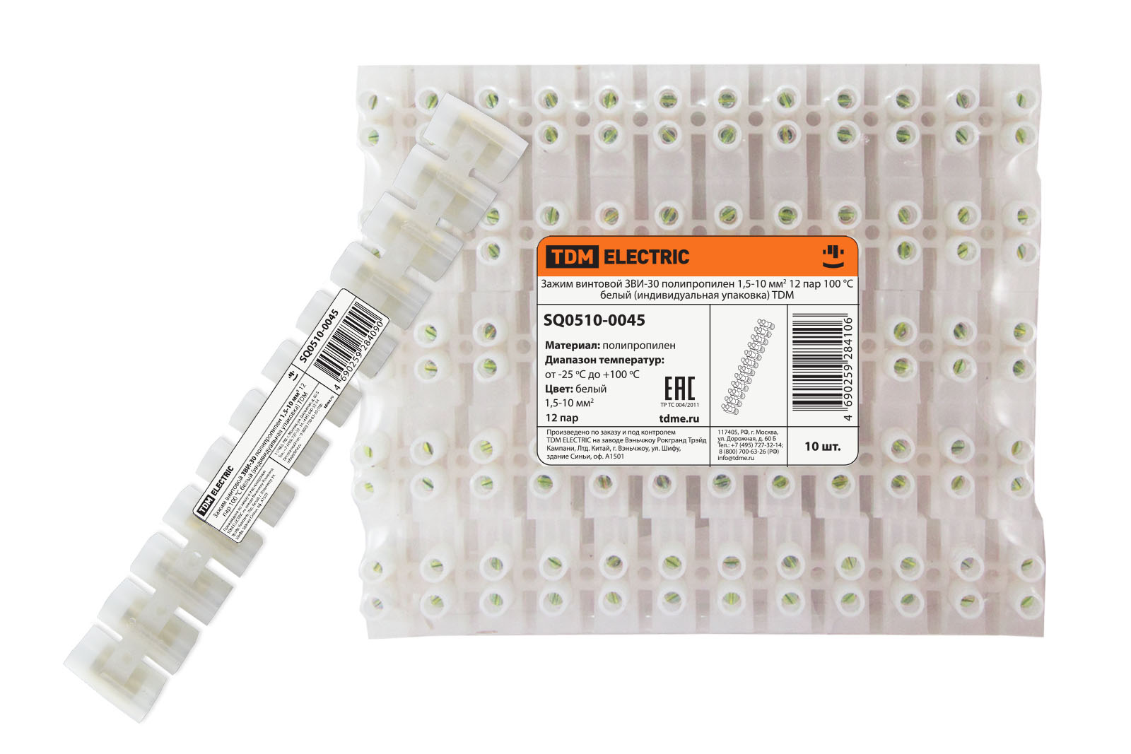Зажим винтовой ЗВИ-30 полипропилен 1,5-10мм2 12пар 100°С белый (индивидуальная упаковка) TDM