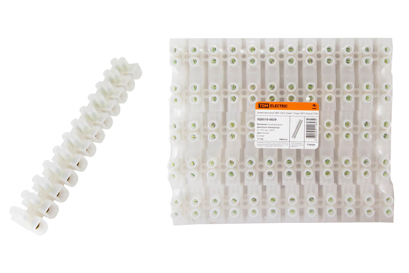 Зажим винтовой ЗВИ-100 полипропилен 6-25мм2 12пар 100°С белый TDM