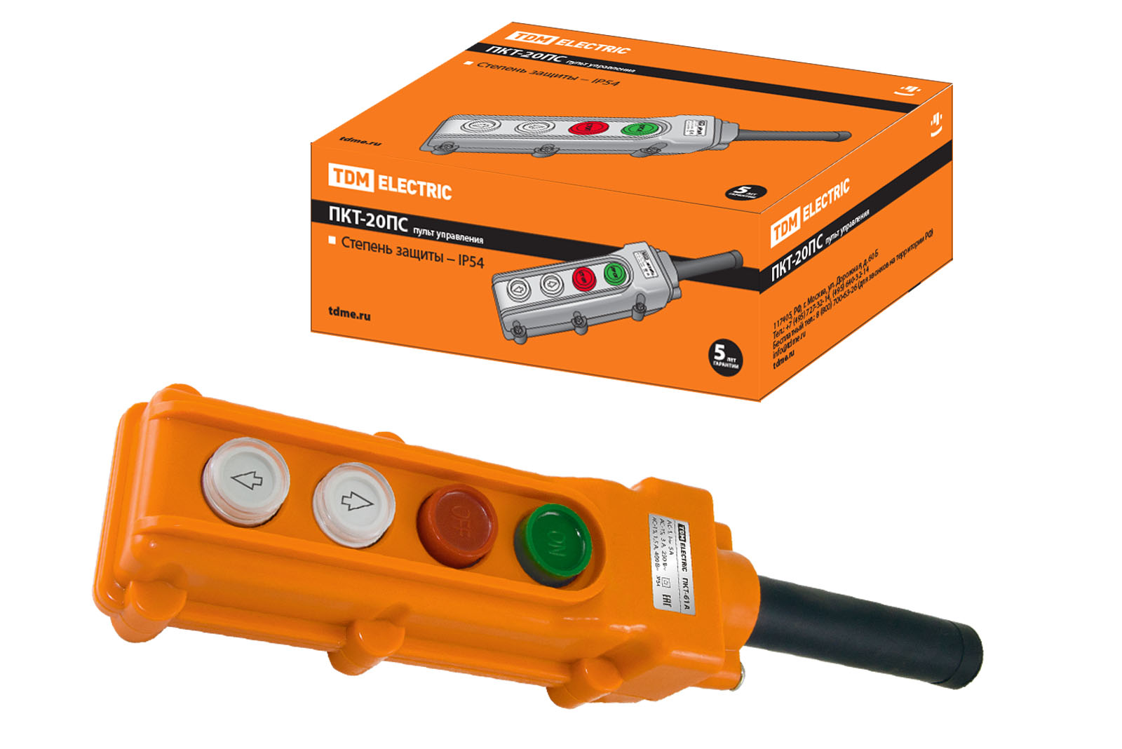 Пульт управления ПКТ-20ПС, кнопки Пуск с фиксацией, Стоп, вверх, вниз, IP54 TDM