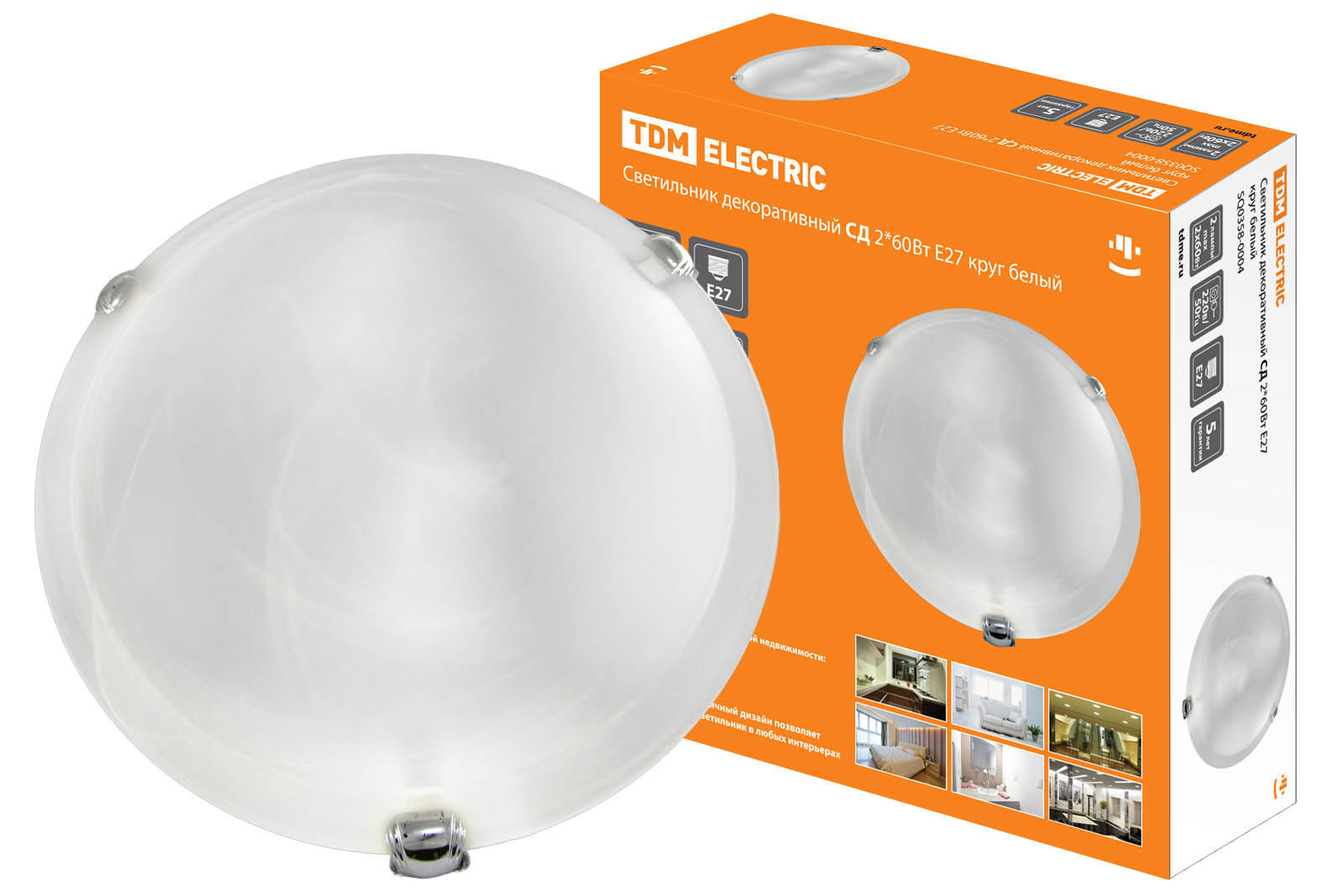 Светильник декоративный СД 2*60 Вт E27 круг белый (в индивид. коробке) TDM