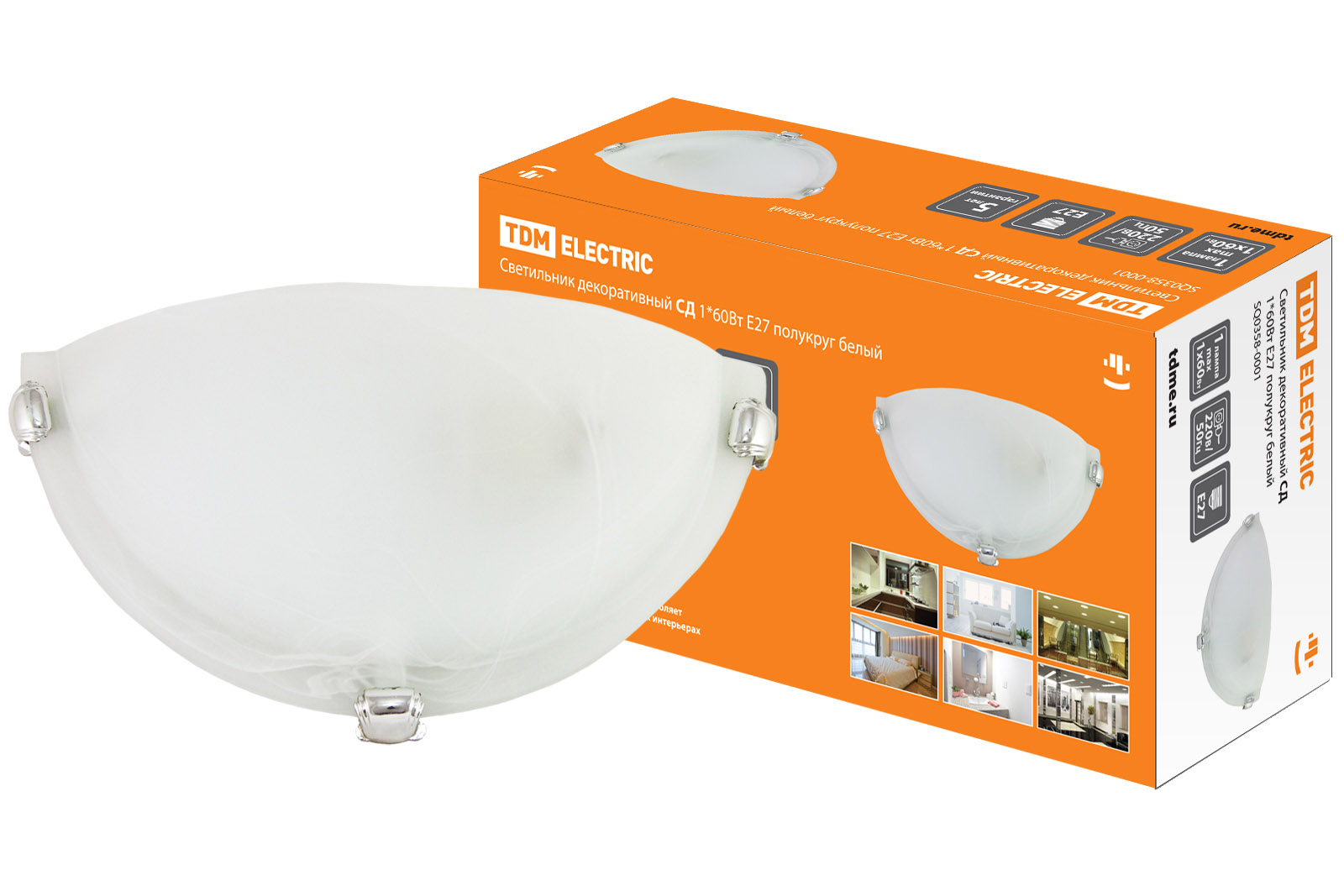 Светильник декоративный СД 1*60 Вт E27 полукруг белый (в индивид. коробке) TDM