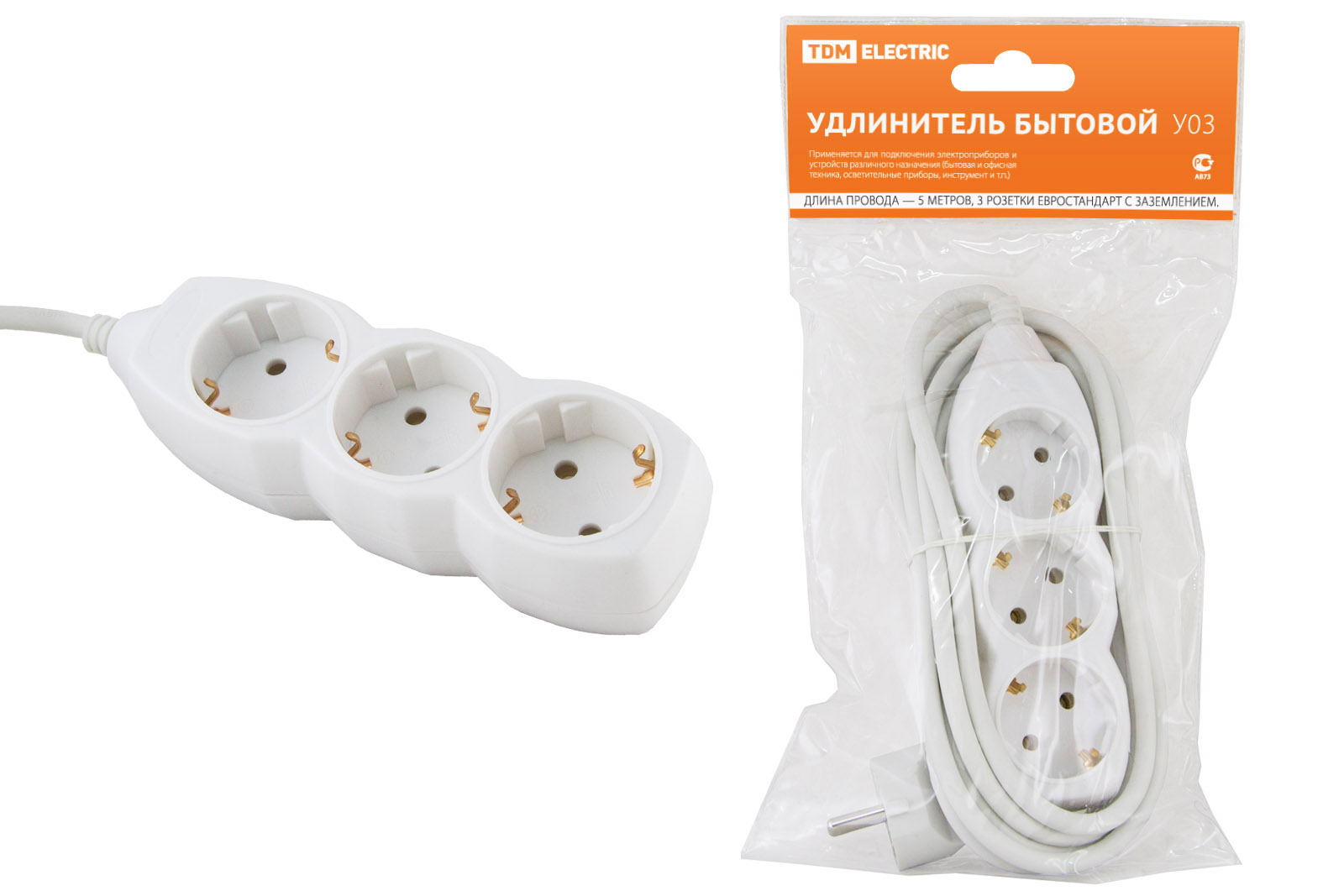 Удлинитель бытовой У03 3 гнезда, 5метров, с заземлением ПВС 3х1мм2 16А/250В TDM