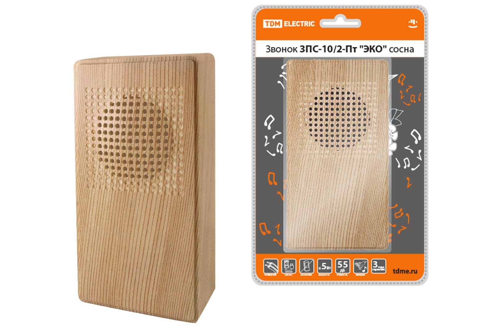 Звонок ЗПС-10/2-Пт "ЭКО" сосна (пров. без.кн., сеть, "птичка") TDM
