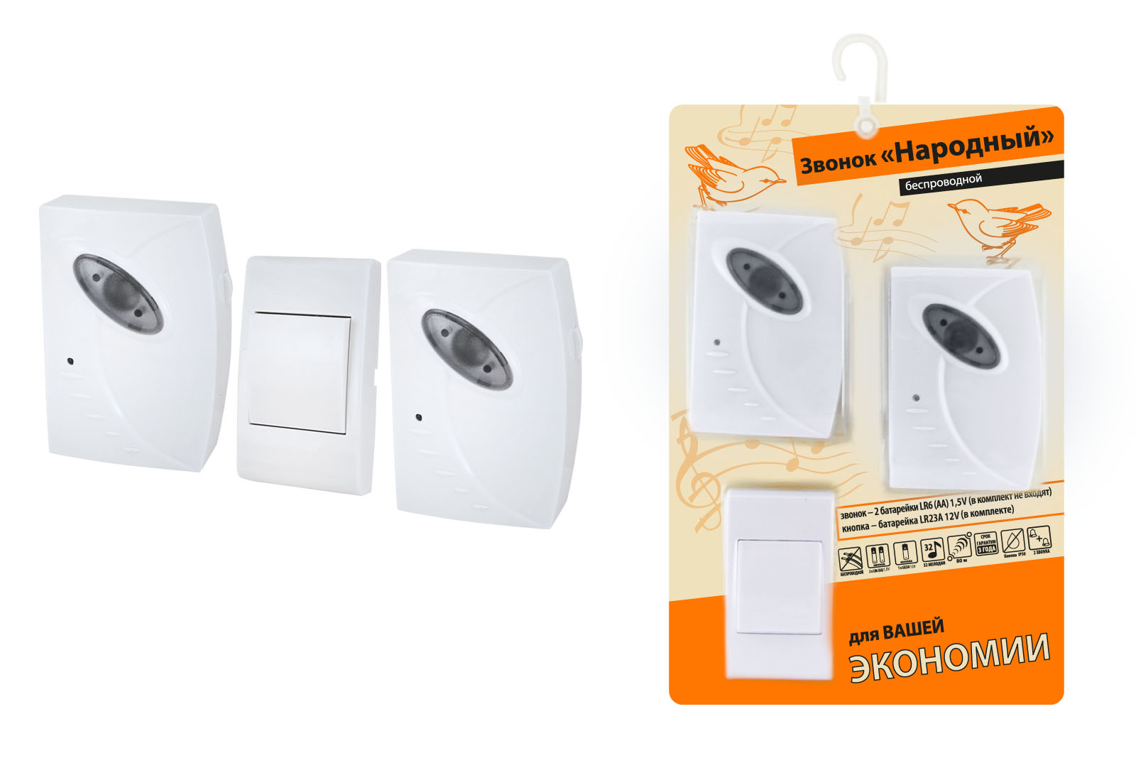 Звонок народный ЗББ-Н-21/1-32М (беспр., бат., 2 зв., блистер, откр.код)