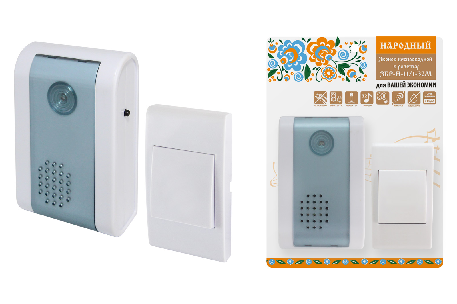 Звонок народный ЗБР-Н-11/1-32М (беспр., роз., блистер, откр.код)